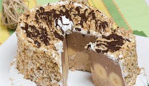 Sastojci za plazma tortu sa bananama 450 g mlevenog plazma keksa 250 g mlevenih oraha 1,5 kg banana 4 žumanceta 250 g šećera u prahu